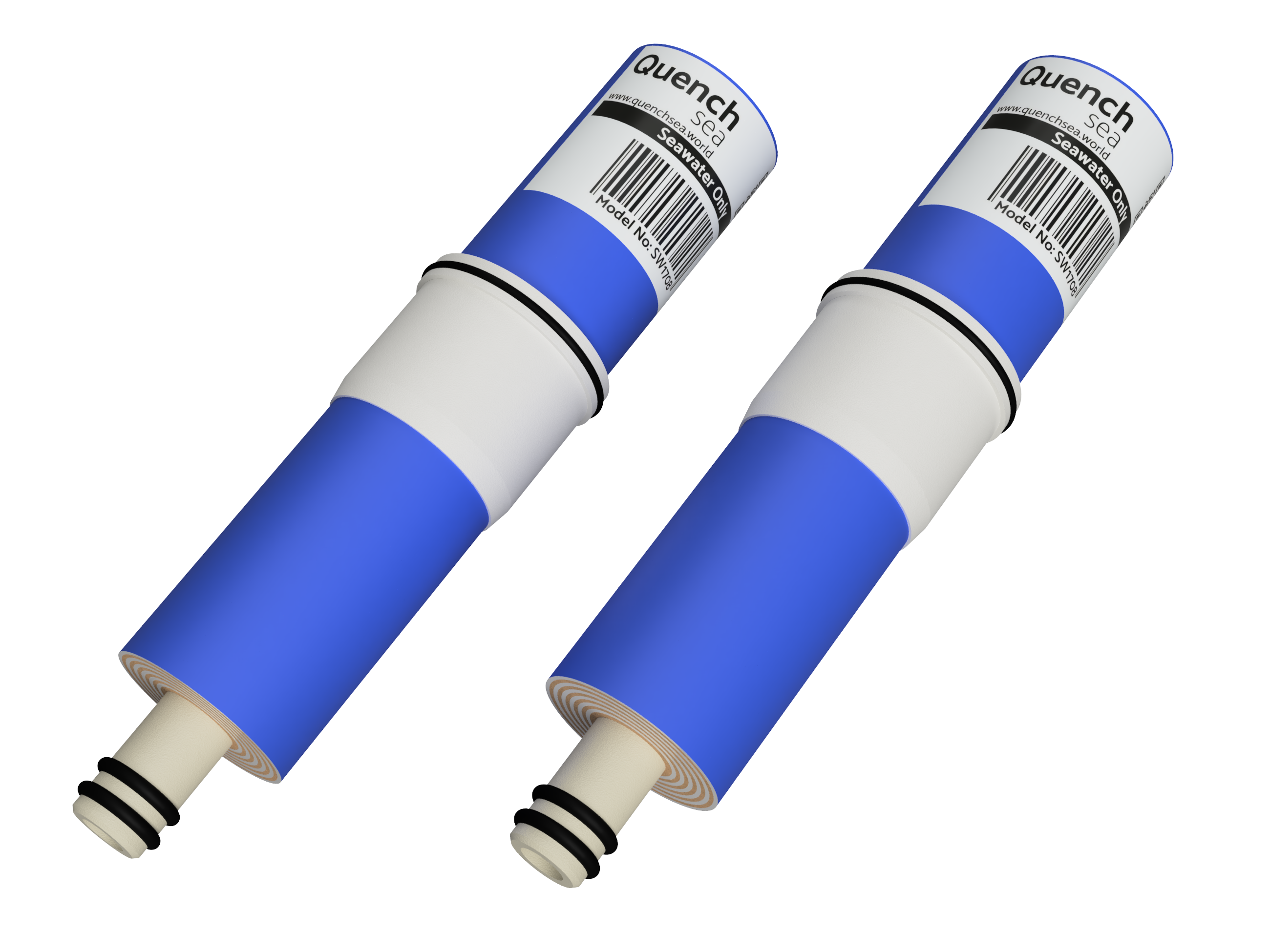 QuenchSea uses an advanced and state-of-the-art industrial Reverse Osmosis membrane to remove salts, bacteria, parasites and microplastics. Seawater molecules are forced through semi-permeable membranes to filter out impurities, salts and all contaminants leaving only pure safe drinking water that is guaranteed to be below 1,000 TDS (Total Dissolved Solids)