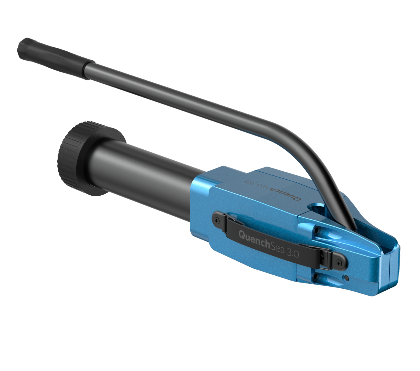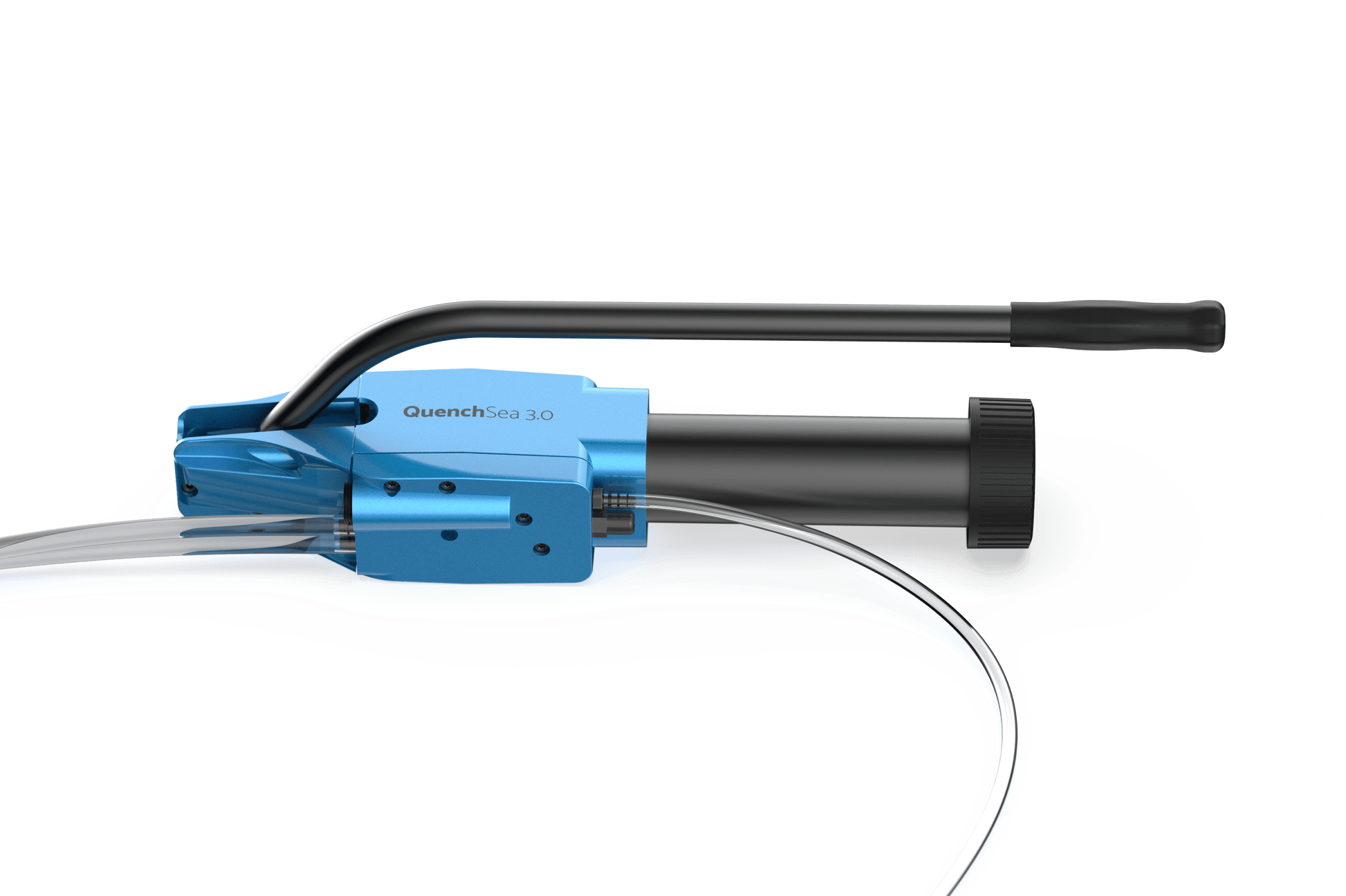QuenchSea 3.0 is a groundbreaking, low cost, portable, manually powered device that instantly turns seawater into drinkable freshwater.